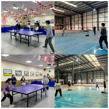 కోర్టులో, టేబుల్ టెన్నిస్ ఆటగాళ్ళు త్వరిత సర్వ్లు, పదునైన స్మాష్లు మరియు సున్నితమైన పుష్లతో తమ రాకెట్లను చురుగ్గా తిప్పారు, అద్భుతమైన నైపుణ్యాలను ప్రదర్శించారు; బ్యాడ్మింటన్ క్రీడాకారులు దూకి, ఊగిపోతూ, షటిల్ కాక్ను ముందుకు వెనుకకు వెంబడించారు, మరియు ప్రతి షాట్ శక్తి మరియు నైపుణ్యంతో నిండిపోయింది. కోర్టు వెలుపల, సహోద్యోగులు ఒకరినొకరు ఉత్సాహపరిచారు మరియు ప్రోత్సహించారు మరియు చప్పట్లు మరియు చీర్స్ నిరంతరం ప్రతిధ్వనించాయి, ఐక్యత మరియు పురోగతి యొక్క వెచ్చని మరియు సామరస్య చిత్రాన్ని ఏర్పరుస్తాయి.